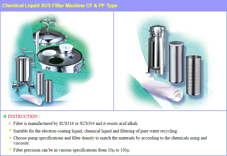 Filter is manufactured by SUS316 or SUS304 and it resists acid/alkali.